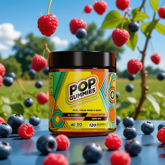 Pop Gummies are crafted to give you a perfect, pre-measured dose of creatine, betaine, Alpha GPC and B-vitamins. Simple, effective, and ready to support your Exercise performance, Brain health and cognition, Muscle hydration and growth, Cellular recovery. Keto, paleo and low carb friendly!